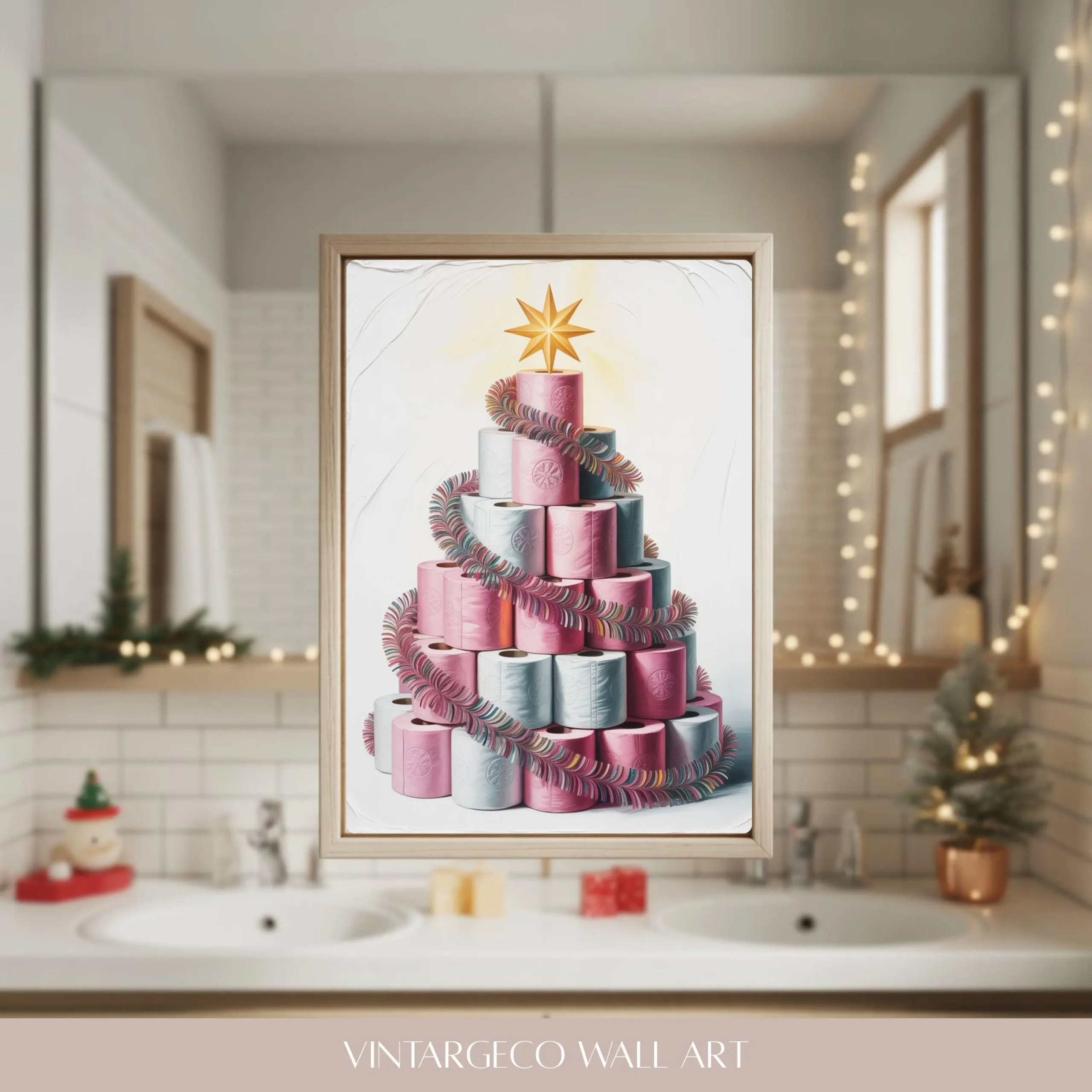Funny Christmas Bathroom Print, Printable Toilet Paper Tree Wall Art – 24 Sizes