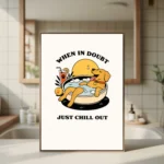 Bring humour and personality into your space with this playful Dog Wall Art For Bathroom. Featuring a relaxed dog soaking peacefully with a light-hearted “Just Chill Out” message, this design adds charm and fun to any bathroom setting.