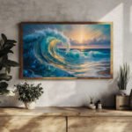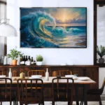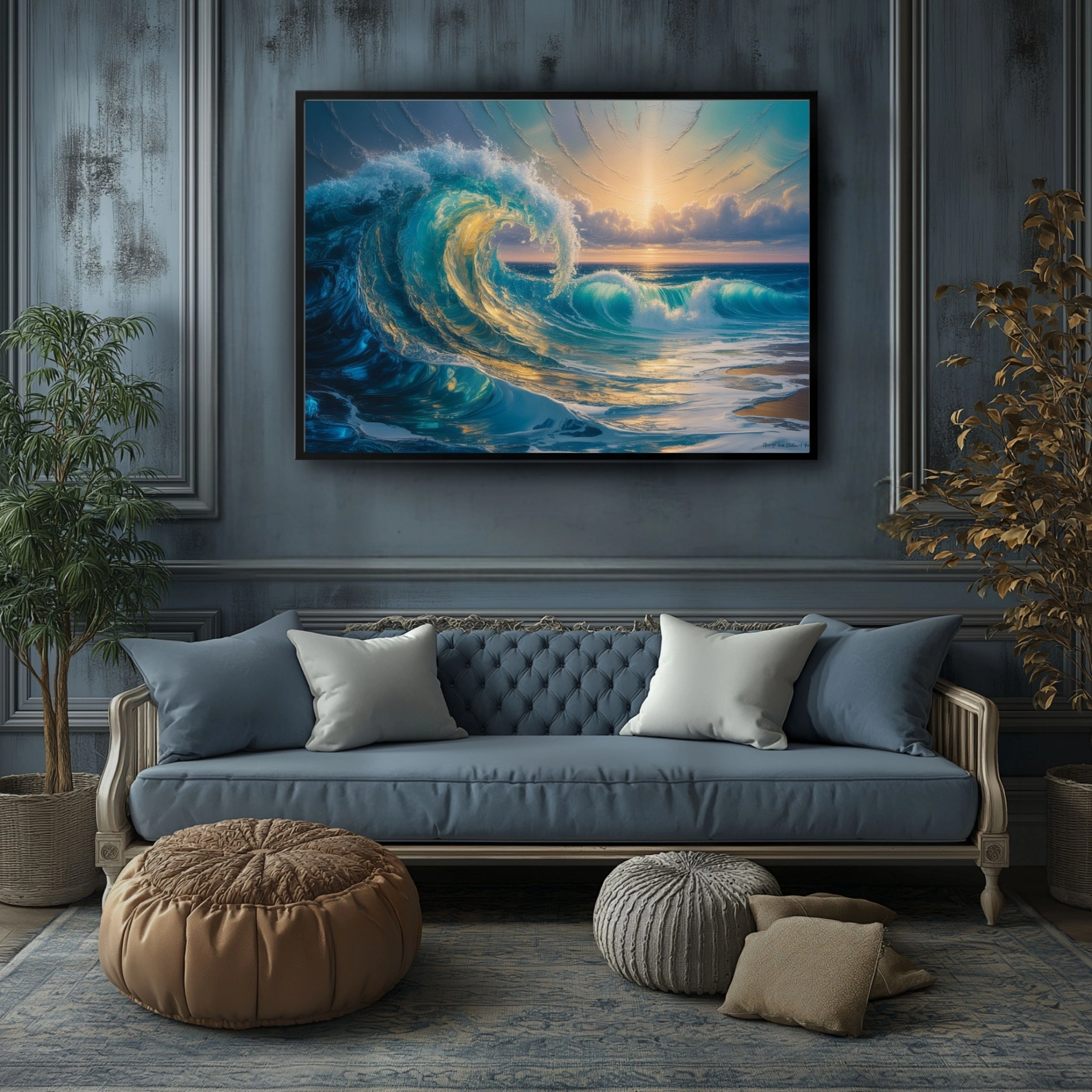 Bring the dramatic energy of the ocean into your home with this premium thick-oil style seascape artwork, featuring a powerful curling wave illuminated by warm golden sunlight. Designed to elevate any coastal or modern interior, this 3:4 landscape print delivers incredible depth, colour, and movement. Rendered in ultra-sharp 300 DPI, it captures every textured brushstroke for a gallery-quality display in any room.