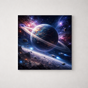 Make your wall unforgettable. This bold Space Wall Art features a massive ringed planet surrounded by glowing galaxies and futuristic spacecraft, designed to transform your room into a cinematic cosmic escape. Perfect as a statement canvas for living rooms, bedrooms, offices, and gaming setups.