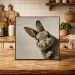 A charming Easter Bunny Surprise printable featuring a curious rabbit in soft neutral tones. Perfect for Easter décor, nurseries, and seasonal home styling.